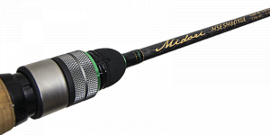 This is a series of exclusive hi-tech spinning rods specially designed for the most effective trout fishing. It consists of 3 versions: Midori Area Edition 60XUL (test: up to 4 g) which is good for catching pond trout and classified as Area Fishing; Midori Stream Edition 62SUL and 66UL (test: up to 5g and 6g respectively) – for fishing in rapid mountain streams, small medium-fast running rivers and brooks. All Midori rods are ideal for delicate fishing requiring “animation” of plastic lures, lightweight jigs, micro spoons and wire rigs. Midori blanks feature fast action, slightly more stiffness compared with classic Area and Stream rods and the shortest damping period (that is how rapidly a rod will damp out vibrations). All the other characteristics of an ultralight trout rod remained the same – long and accurate casting of lures in all the range of weights, the possibility “to animate” a lure, extraordinary sensitivity, perfect balance and ultralight weight. This rod is made of high modulus NANO carbon fibers reinforced with L.W.G. Wrapping Carbon for additional protection of the blank. It is equipped with premium Fuji components: super light and productive TORZITE guides in titanium frames, ergonomic reel seat and high quality cork handle. Thanks to combination of NANO fibers, FUJI TORZITE guides, Super Sensitive System and Mini Guide System we managed to create surprisingly light weight rod (for example, the weight of 60XUL is only 58g) with incredible sensitivity and amazing power. The flexible blank perfectly works when playing a fish reducing hookpulls and line breakage to a minimum.