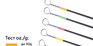 | Артикул | Длина, см | Трансп. длина, см | Кол-во колец | Кол-во секций | Тест, oz/г | Цвет вершинки |