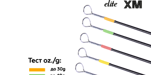| Артикул | Длина, см | Трансп. длина, см | Кол-во колец | Кол-во секций | Тест, oz/г | Цвет вершинки |