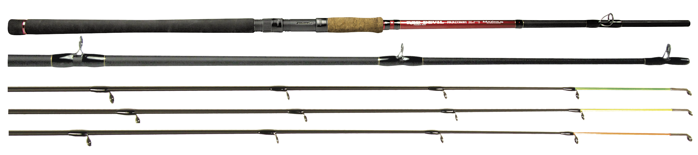 Red Devil – серія фідерних вудилищ, що підходять для більшості умов рибалки, чи то річка зі стрімкою течією або глибоке озеро зі стоячою водою. Триколінний фідер середньо-швидкого ладу виготовлений з графіту, обладнаний пропускними кільцями з вставками SIC, неопреновою (EVA) рукояткою і надійним класичним катушкотримачем. Комплектується трьома вершинками різного ступеня жорсткості (двома склопластиковими, однією графітовою). Якісний графітовий бланк забезпечує необхідну жорсткість і відмінну посилістость вудилища.